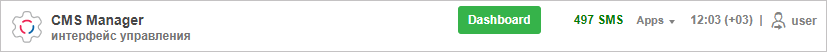 - логин (правый угол) — имя пользователя-менеджера под которым был произведен вход в CMS Manager (в скобках может указываться еще один логин, если основной пользователь вошел от имени другого).