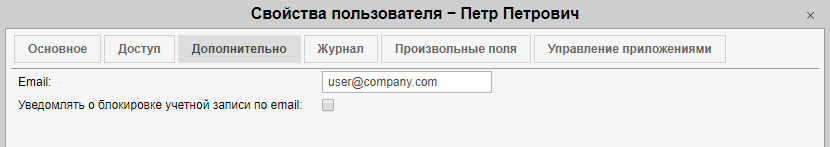 Если хотите получать уведомления о блокировке учетной записи на email адрес, указанный выше, активируйте опцию Уведомлять о блокировке учетной записи по email. Уведомления начинают приходить ежедневно за 5 дней до блокировки. Для работы с данной опцией необходимо активировать сервис Уведомления по email в свойствах учетной записи.