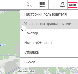 Чтобы открыть окно, в правом верхнем углу экрана нажмите на имя пользователя и выберите пункт Управление приложениями.