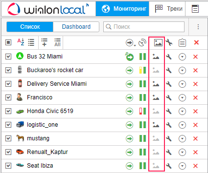 Вместе с сообщениями объект может присылать изображения или видео-файлы, если оборудование поддерживает такую возможность. Эти изображения (видео) можно просматривать как в панели сообщений, так и в панели мониторинга. Для выведения специального столбца на панель мониторинга должна быть активирована опция Фотографии и видео в настройках панели мониторинга.