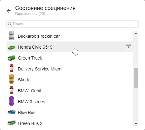Эти иконки содержат какую-либо информацию о текущем состоянии объекта (движение/остановка, показания датчика, состояние соединения, актуальность данных, информация о водителе и др.). Дополнительную информацию можно узнать из всплывающей подсказки, которая появляется при наведении на иконку курсора мыши.