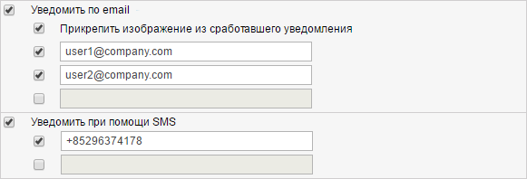 Кроме того, если оборудование позволяет, к уведомлению может быть прикреплено изображение, присланное объектом в сообщении, которое привело к срабатыванию уведомления. Для этого активируйте опцию Прикрепить изображение из сработавшего уведомления.