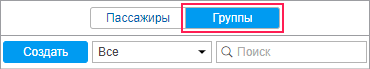 Для работы с группами пассажиров выберите соответствующий режим в панели Пассажиры.