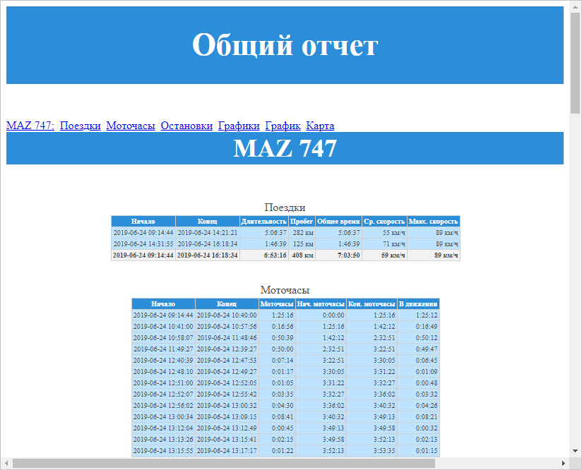 При экспорте отчета в файлы PDF, HTML, Excel применяется автоматическое выравнивание столбцов. Столбцы с текстом (названия датчиков, команд, геозон, имена водителей, пользователей, текст событий, SMS, местоположение объекта и т.п.) выравниваются по левому краю. Столбцы с численными данными (время, длительность, скорость, пробег, топливо, платежи, количество и т.п.) выравниваются по правому краю. Названия таблиц и столбцов таблиц выравниваются по центру.