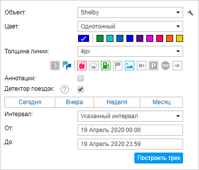 - из панели мониторинга при помощи кнопки быстрого построения трека;