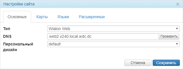 ТипТип сайта. В зависимости от состава лицензии возможны следующие основные типы сайтов: Wialon Web, CMS Manager, Logistics, Nimbus, Fleetrun, Hecterra. Если в лицензии есть дополнительные сайты типа Wialon Web, то при необходимости их тип можно изменить на CMS Manager.