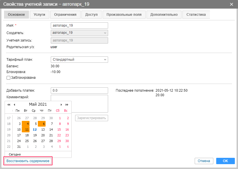 В системе Wialon можно восстанавливать содержимое ресурса. Для этого необходимо обладать в отношении него следующими правами: