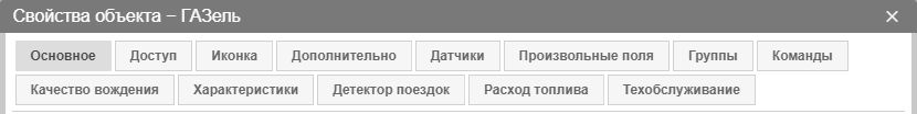Набор доступных вкладок может варьироваться в зависимости от прав доступа пользователя на объект и включенных услуг. Максимальное количество вкладок — 13.