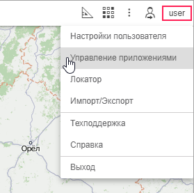 Чтобы открыть окно, в правом верхнем углу экрана нажмите на имя пользователя и выберите пункт Управление приложениями.
