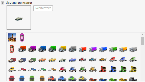 При выборе этого способа действия после срабатывания уведомления текущая иконка объекта изменяется на указанную. Окно с доступными иконками открывается нажатием на кнопку Библиотека.