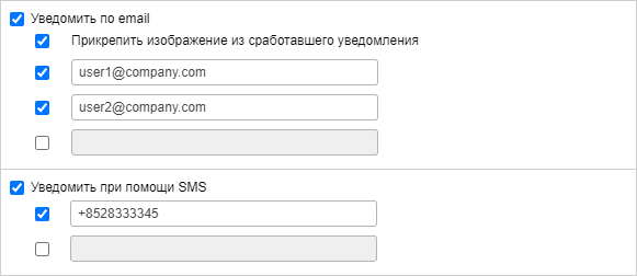 Кроме того, если оборудование позволяет, к уведомлению можно прикрепить изображение, присланное объектом в сообщении, которое привело к срабатыванию уведомления. Для этого активируйте опцию Прикрепить изображение из сработавшего уведомления.