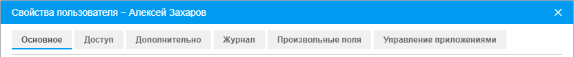 Диалог свойств пользователя может содержать до пяти вкладок (их доступность зависит от прав), которые были подробно описаны выше: