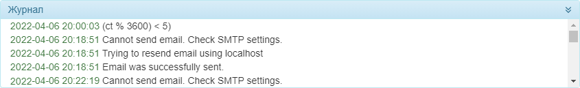 Журнал находится в нижней части экрана. В нем показывается информация о событиях, происходящих в Wialon Local. Например, о его запуске или остановке, наличии доступных обновлений, установке компонентов и т. д. При перезагрузке страницы из журнала удаляются все события.