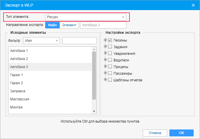 Экспорт геозон