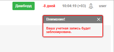 - количество дней до блокировки учетной записи (отображается зеленым, но как только остаток дней достигает 0, цвет меняется на красный);