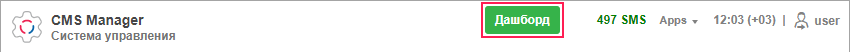 - логин (правый угол) — имя пользователя-менеджера под которым был произведен вход в CMS Manager (в скобках может указываться еще один логин, если основной пользователь вошел от имени другого).