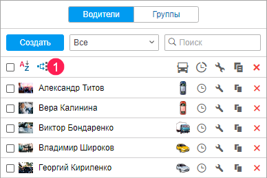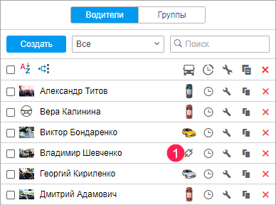 напротив необходимого водителя в списке водителей или их групп. Если у вас нет права доступа Создание, редактирование и удаление водителей на ресурс, то иконка неактивна (