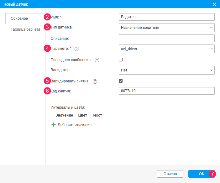 - Укажите параметр датчика в соответствии с настройками используемого оборудования. Например, avl_driver.