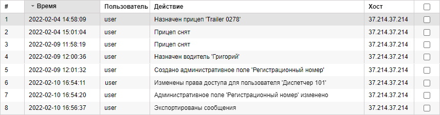 | Хост | Адрес компьютера, откуда пользователь производил изменения. В этой колонке может быть запись типа задание или уведомление, что означает, что данное действие было произведено системой автоматически. |