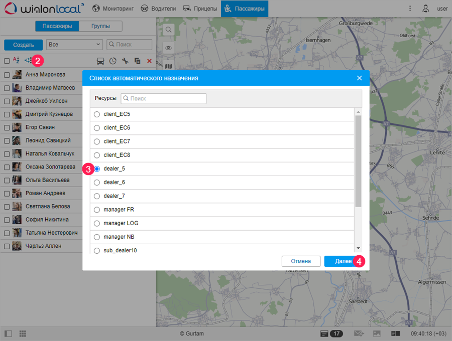 Чтобы настроить автоматическое назначение и снятие пассажиров, выполните следующие шаги: