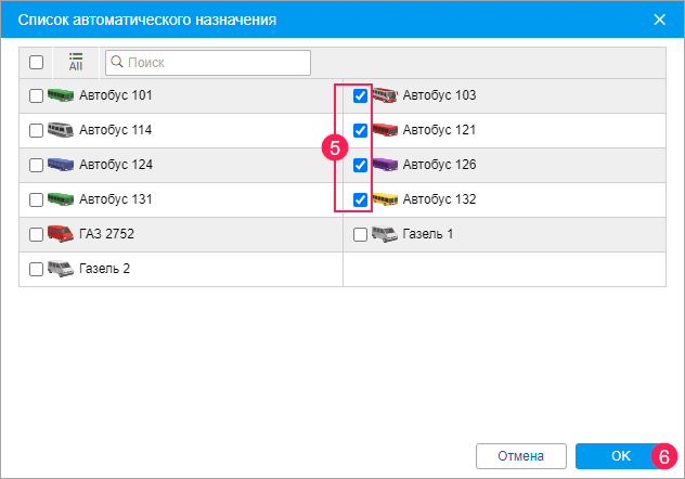 - Использование объекта в уведомлениях, заданиях, маршрутах, ретрансляторах — на объекты, которые должны использоваться при автоматическом назначении и снятии пассажиров.