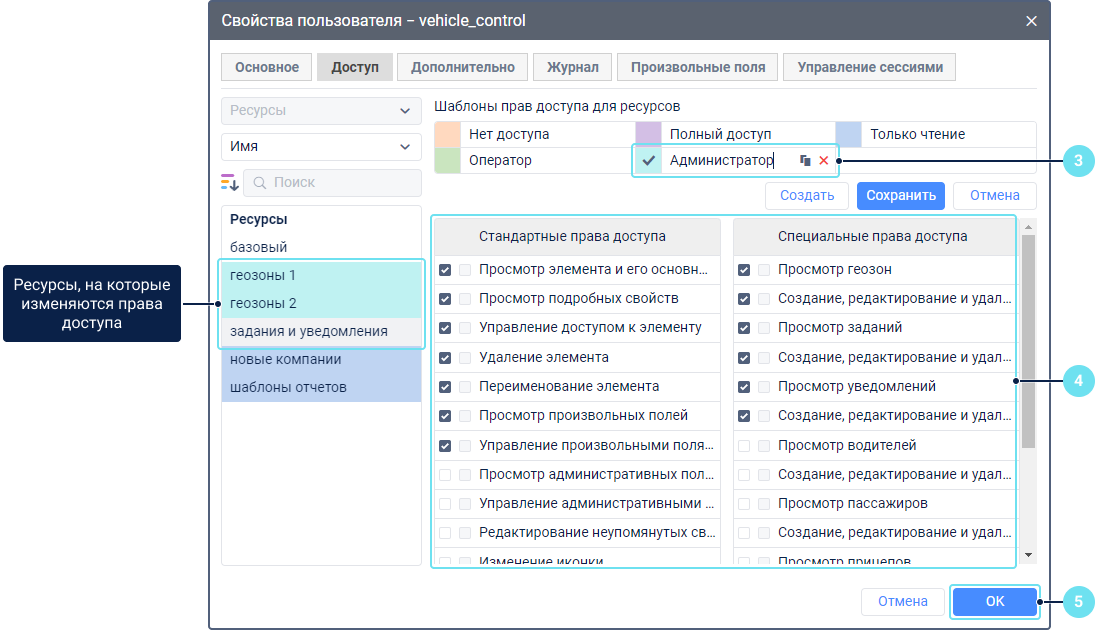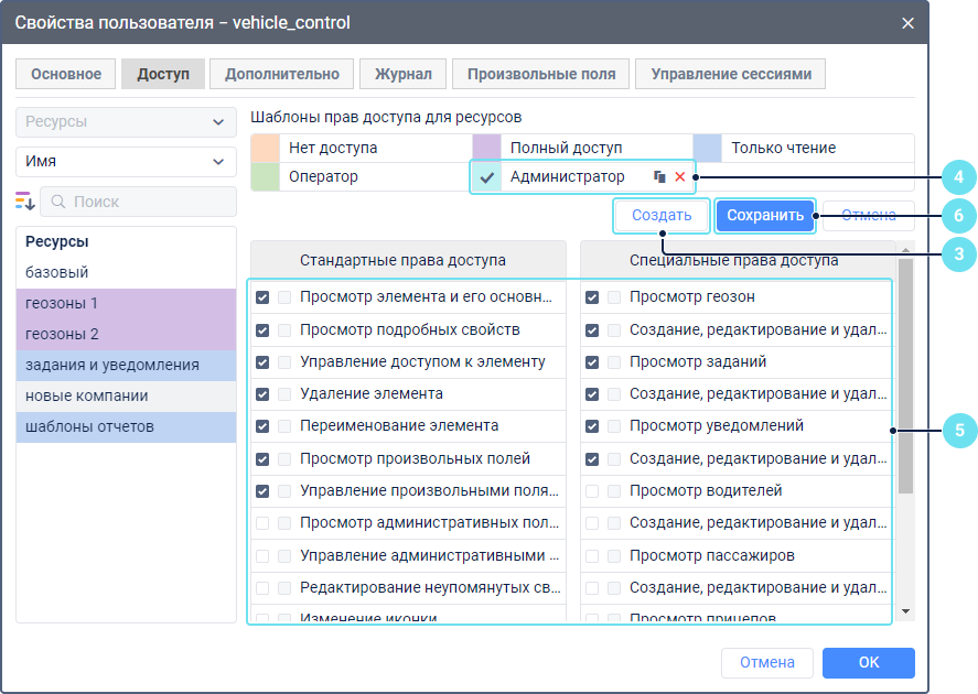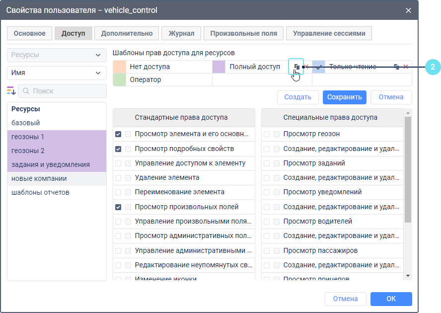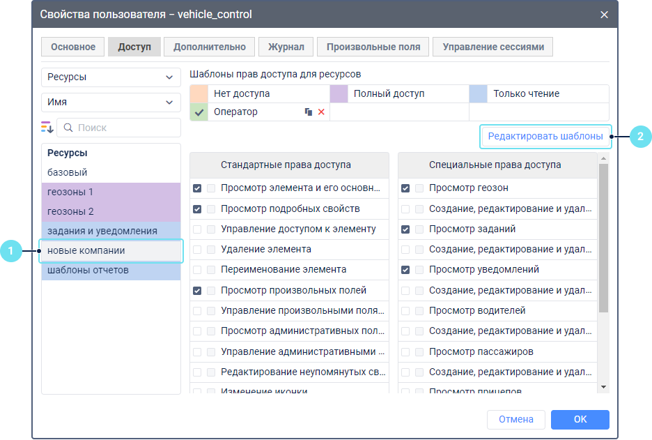Шаблоны прав доступа — это готовые наборы прав доступа. Их можно использовать, если в вашей системе пользователи имеют роли с одинаковыми правами доступа: например, диспетчер, менеджер, конечный пользователь и т. п.