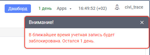 В верхней панели под именем пользователя могут показываться информационные сообщения от администратора сервиса. Чтобы получать их, для учетной записи должна быть включена услуга Информационные сообщения.