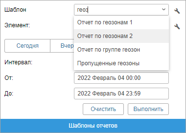 - в отчетах для конкретизации водителя, датчика, события (нарушения), маршрута и его геозоны, а также при выборе геозон;