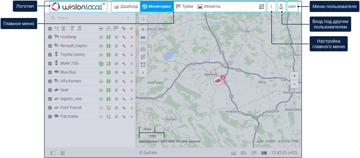 | Мониторинг | Слежение за местоположением и состоянием объектов. | |
