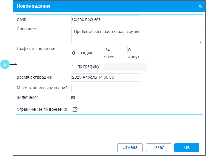6. Укажите параметры выполнения задания. Нажмите OK.