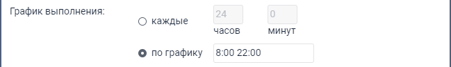 • По графику. Эта опция позволяет создать расписание выполнения задания в рамках суток. Время указывается в 24-часовом формате часы:минуты или часы. Можно указать несколько значений времени через пробел. Например:
