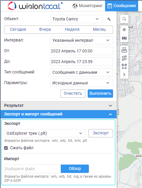 Wialon позволяет осуществлять экспорт/импорт сообщений. Этой процедуре могут быть подвержены только сообщения первого типа, то есть сообщения от объекта.