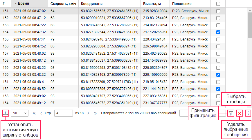 Фильтрация недоступна при запросе сообщений с параметрами в виде значений датчиков.
