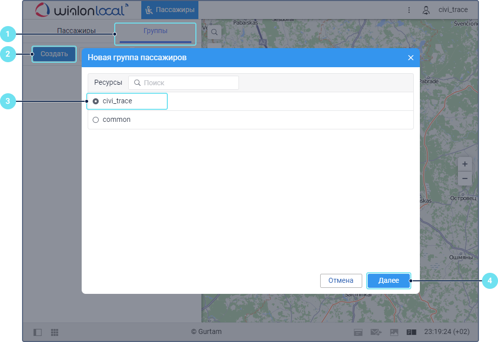 - Выберите ресурс, в котором необходимо создать группу пассажиров.