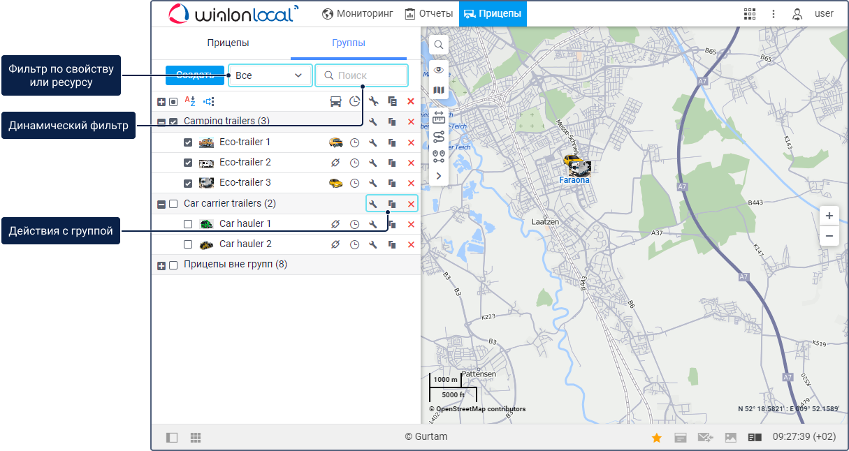 . Для быстрого поиска необходимой группы воспользуйтесь динамическим фильтром или фильтром по свойству (незначенные или назначенные прицепы) или ресурсу.