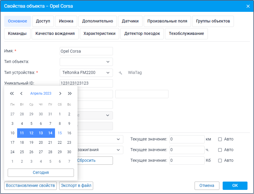 Если данные на какой-либо вкладке свойств были ошибочно изменены или удалены, то вы можете их восстановить. Для восстановления доступны настройки свойств, сохраненные за последние 14 дней. Эти настройки сохраняются автоматически на сервере раз в сутки.