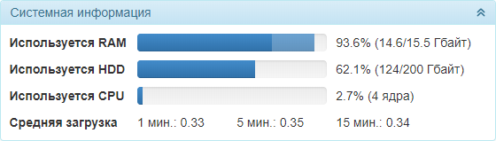 | Средняя загрузка | Загруженность сервера за последние 1, 5 и 15 минут. |