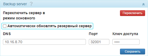 | Переключить сервер в режим резервного | Опция используется, если необходимо переключить резервный сервер в режим основного. См. подробнее. |