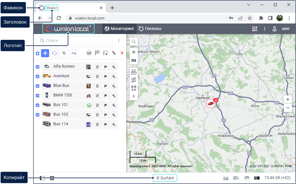 | WebGIS | Опция, позволяющая переименовать Gurtam Maps в WebGIS. |