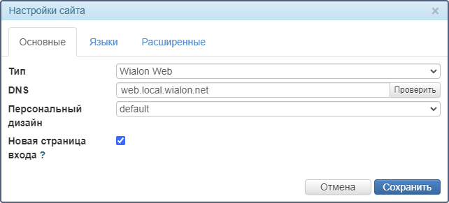 ТипТип сайта. В зависимости от состава лицензии возможны следующие основные типы сайтов: Wialon Web, CMS Manager, Logistics, Nimbus, Fleetrun, Hecterra. Если в лицензии есть дополнительные сайты типа Wialon Web, то при необходимости их тип можно изменить на CMS Manager.
