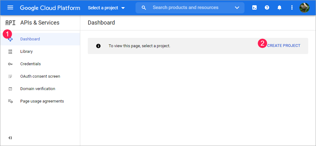 1. Откройте страницу Google Cloud Platform и войдите в учетную запись Google. По умолчанию открыта вкладка Dashboard.
