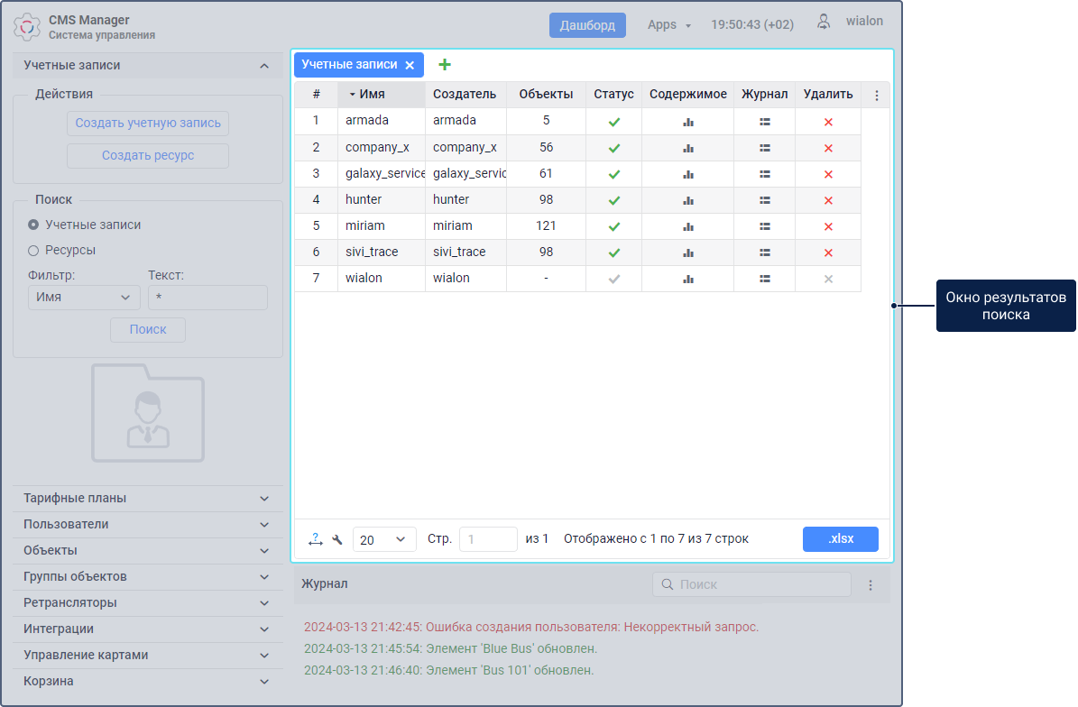 В интерфейсе системы управления можно выделить следующие основные элементы: