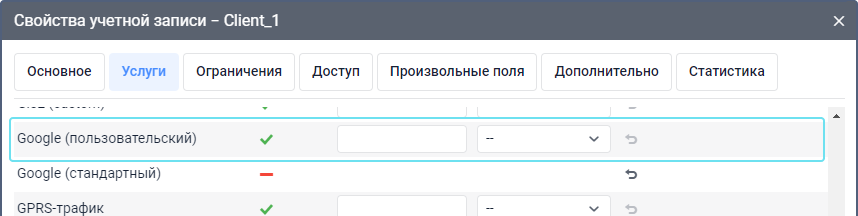 Перейдите в свойства тарифного плана или учетной записи пользователя и найдите услугу, соответствующую добавленному ключу карты (Доступ к карте: …).