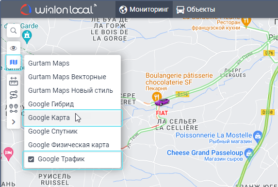 В верхнем левом углу карты в системе мониторинга нажмите на кнопку
