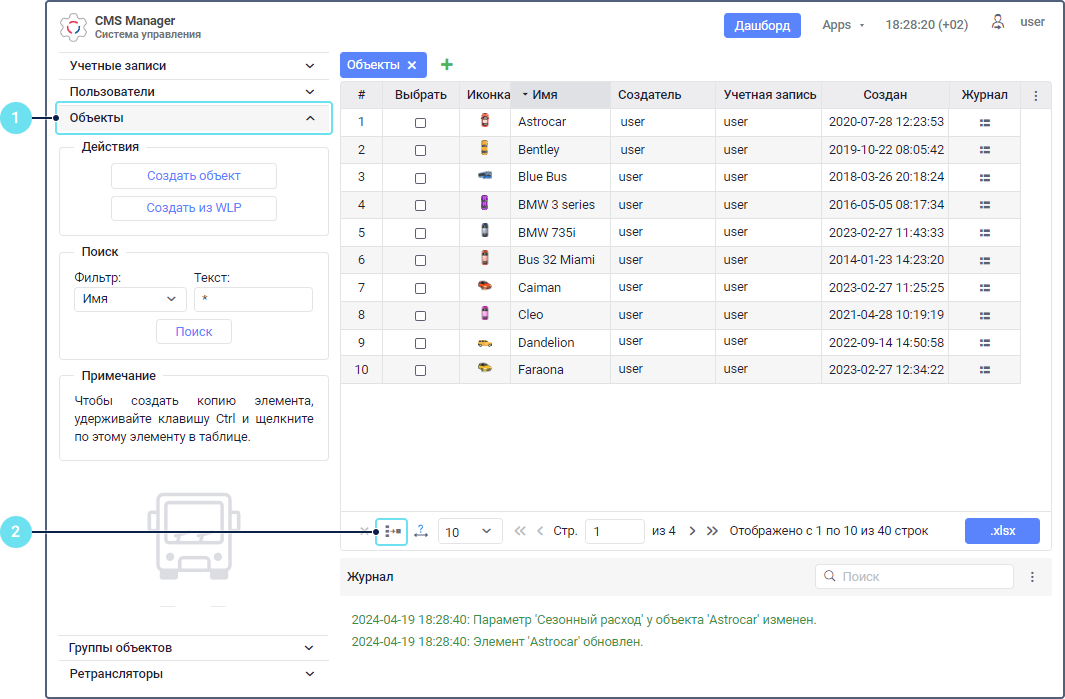 В результате у перенесенных объектов изменяется учетная запись и создатель, а у учетных записей — количество созданных и доступных объектов. Вместе с объектом переносится вся его история, то есть база данных с сообщениями от него. Также переносятся все настройки в свойствах объекта, включая права доступа.