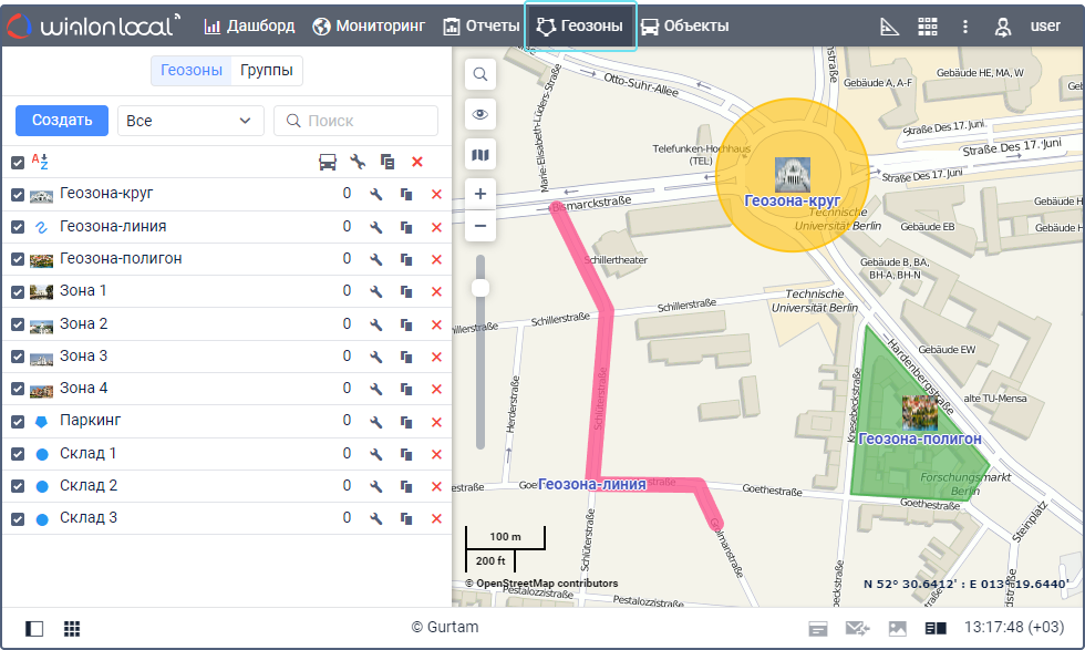 Геозоны, или географические зоны, — это определенные области на карте, предназначенные для контроля за перемещением объектов в этих областях или за их пределами.