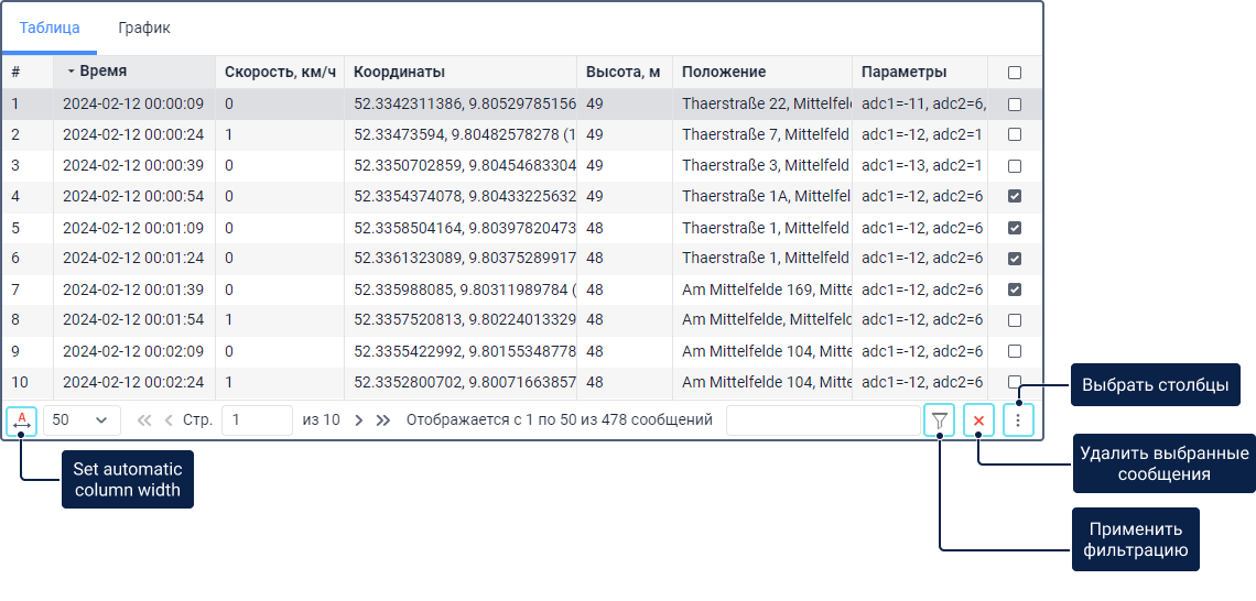 Фильтрация недоступна при запросе сообщений с параметрами в виде значений датчиков.