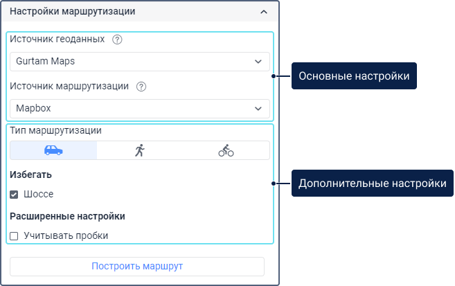 Этот раздел состоит из основных и дополнительных настроек маршрутизации, которые позволяют планировать разнообразные маршруты с учетом следующих особенностей: