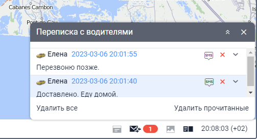 Отправленные водителем сообщения показываются в журнале и в окне Переписка с водителями, так же как и команды, отправленные с оборудования. В этом окне можно ответить на сообщения водителя, нажав на иконку .
