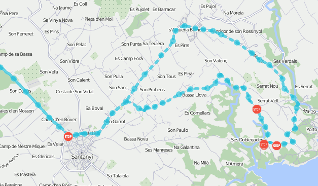 Трек или его часть могут показываться на карте пунктирной линией, если данных недостаточно. Например, превышен параметр Максимальный интервал между сообщениями (вкладка Дополнительно) или количество спутников меньше четырех (если опция фильтрации валидности сообщений отключена).